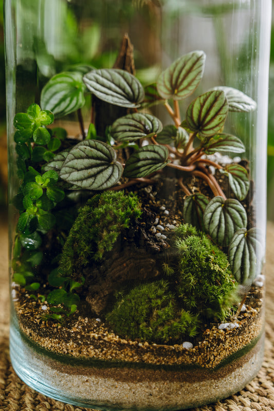 En El Jardí del Jaume, transformamos la naturaleza en arte a través de la creación de terrarios artesanales únicos. Nos especializamos en diseñar y construir ecosistemas naturales en miniatura, cuidando cada detalle para que las plantas vivan y crezcan en armonía.