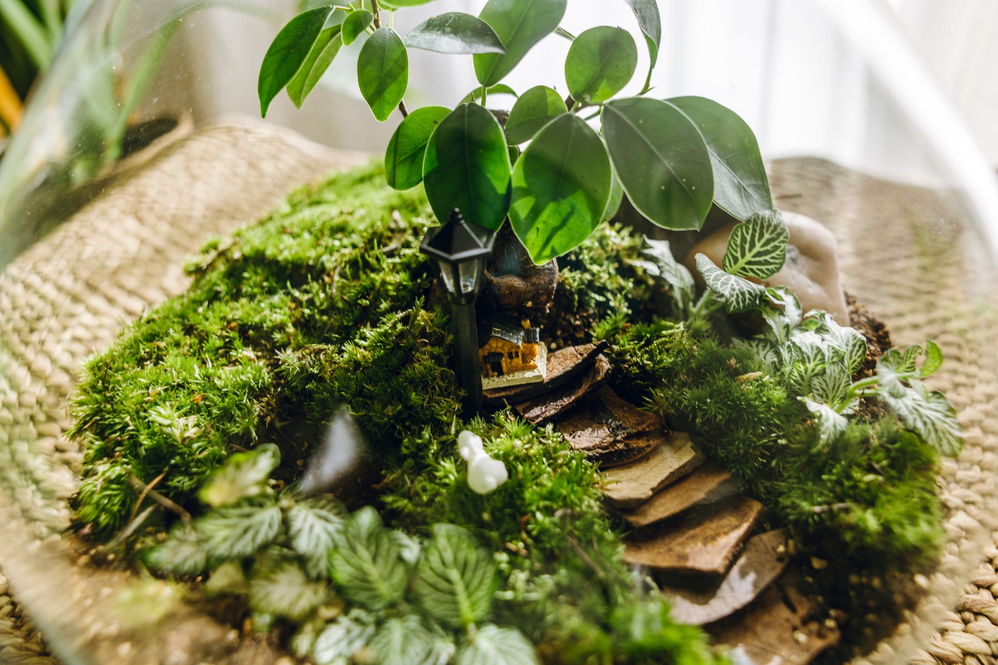 Plantas incluidas: Ficus Ginseng + Fitonia y musgo.