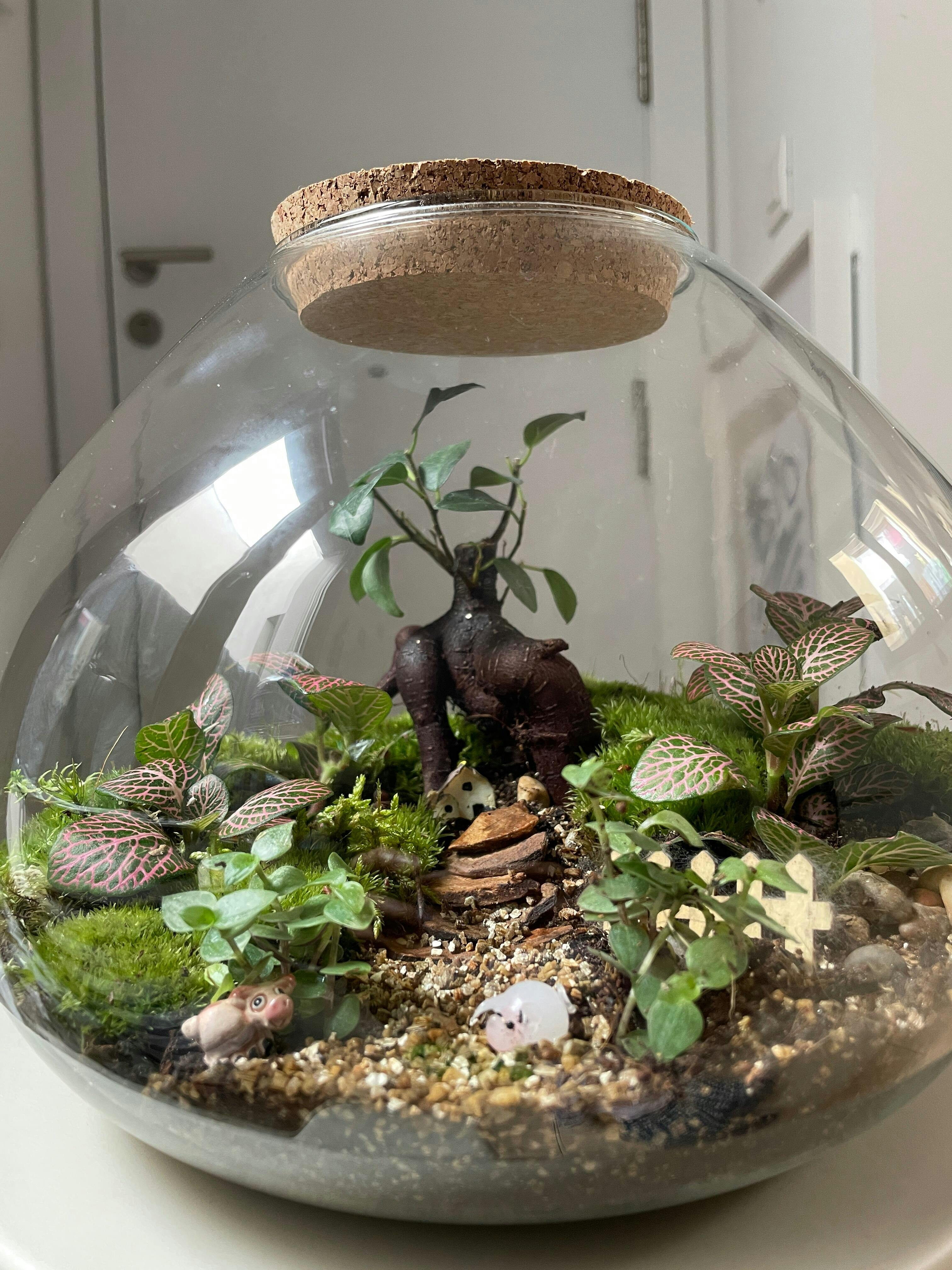 Desde que vi este terrario en fotos, me enamoré. Tuve la oportunidad de hacerlo en uno de los talleres donde puedes elegir las plantas y la decoración según tus preferencias así que quedé aún más encantada. Es perfecto para quienes amamos las plantas y queremos decorar nuestros espacios. Seguro haré otro mas adelante.