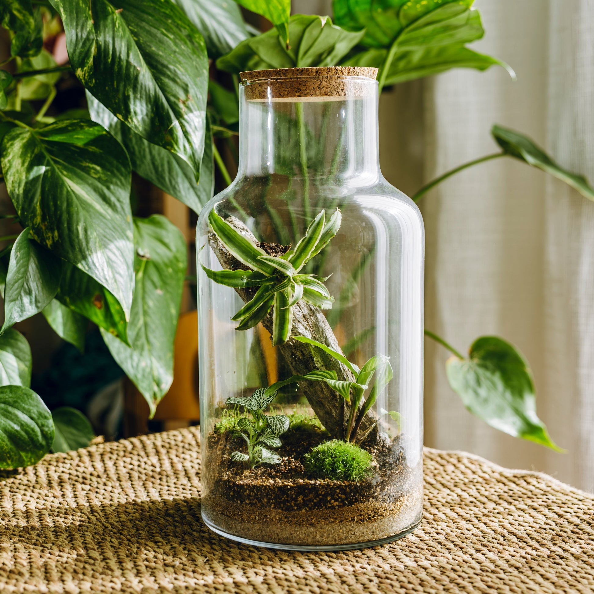 Descubre la magia de los terrarios tropicales de El Jardí del Jaume, pequeños ecosistemas vivos creados en Barcelona. Cada terrario combina diseño, naturaleza y bienestar, ofreciendo una manera fácil y elegante de conectar con la naturaleza en casa o en el trabajo. Gracias a su ciclo de agua autosuficiente, estas plantas tropicales requieren muy poco mantenimiento, siendo ideales para quienes desean disfrutar de la frescura verde sin complicaciones. Hechos a mano con materiales de alta calidad, nuestros terrarios son perfectos para decorar, regalar o crear un rincón de calma en tu espacio. Vive la experiencia de tener un jardín tropical en miniatura que crece contigo.